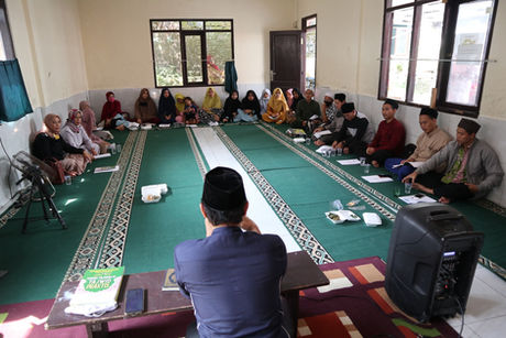 Pelatihan tajwid dan penyaluran wakaf buku ngaji di Madrasah Diniyah Miftahul Huda, Ciherang Pondok, Caringin - Bogor, 26 September 2020